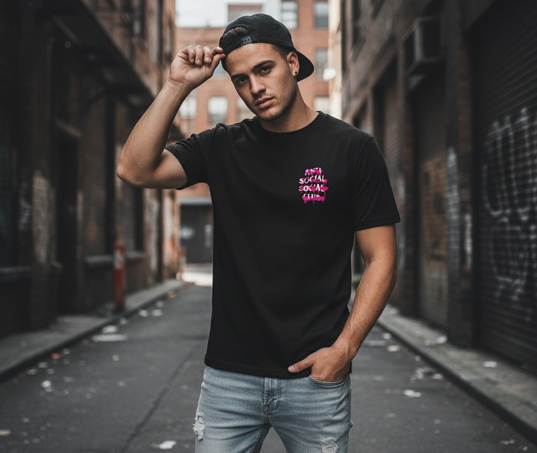 La Anti Social Social Club – Drip es una de las piezas más llamativas de la colección StreetwearAGS. Su diseño combina el clásico logo de la marca con un efecto rosa neón que simula pintura derramándose, logrando un estilo urbano y artístico único.