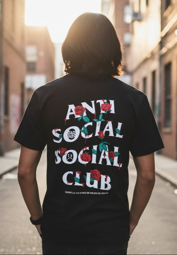 La Playera Anti Sad Boyz – Rosas Sangrantes mezcla lo urbano con un toque gótico y romántico. Su diseño combina tipografía impactante con rosas rojas que parecen sangrar, resaltando el estilo callejero con un aire rebelde y auténtico.